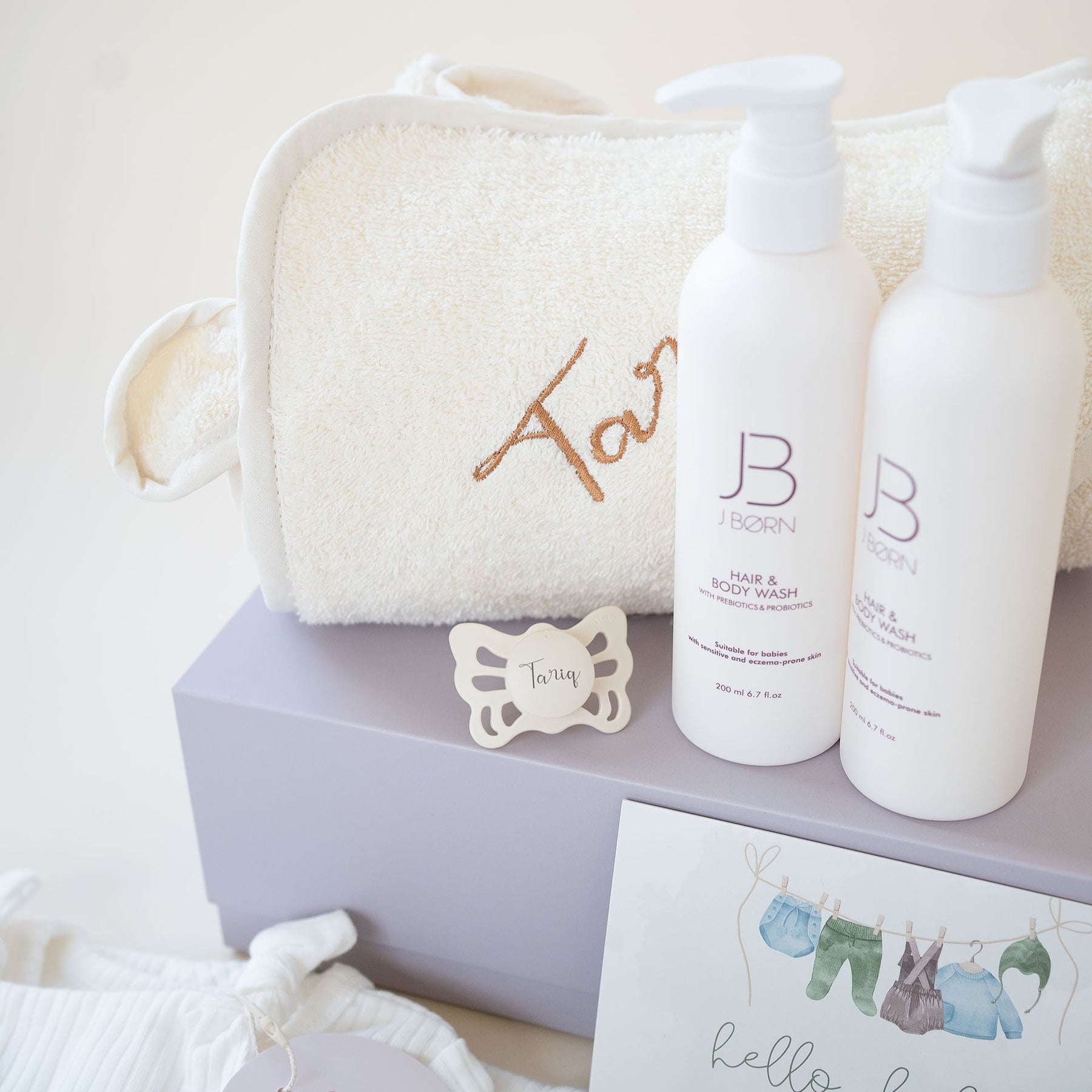 Add a personal touch with your message on our elegant gift card, making this set an unforgettable choice for baby showers, birthdays, or as a thoughtful new baby gift.