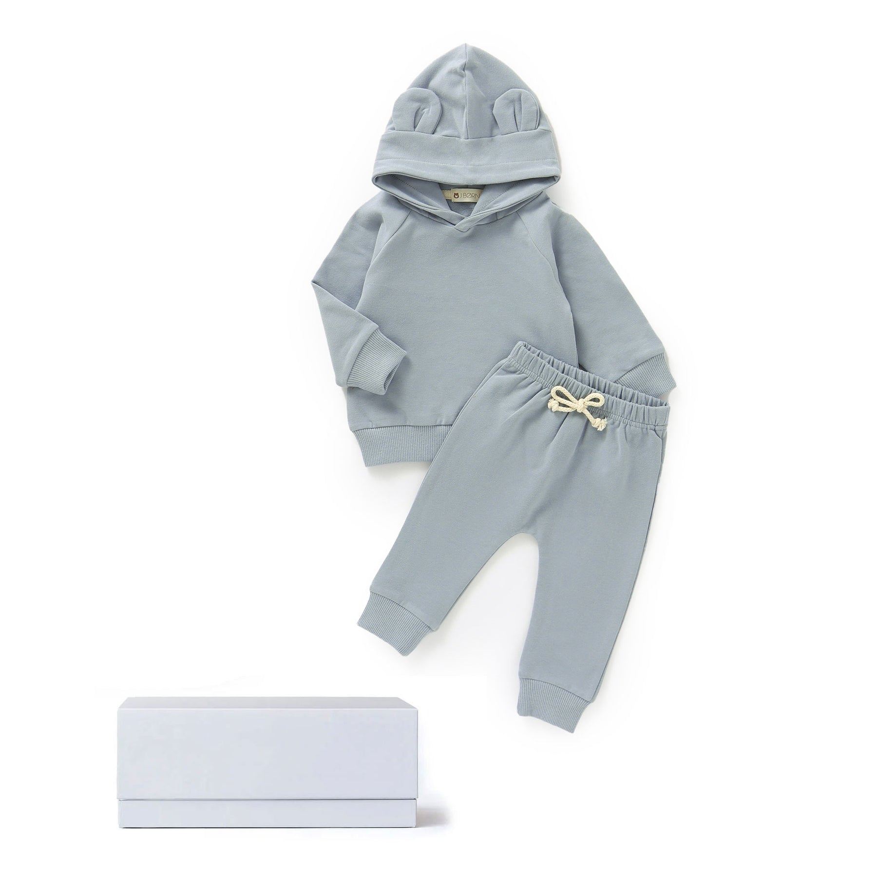 JBØRN Gift Set, a perfect Birthday gift for your little one. Made from GOTS organic cotton, the set includes a personalized hoodie with our iconic teddy ear design and matching joggers.