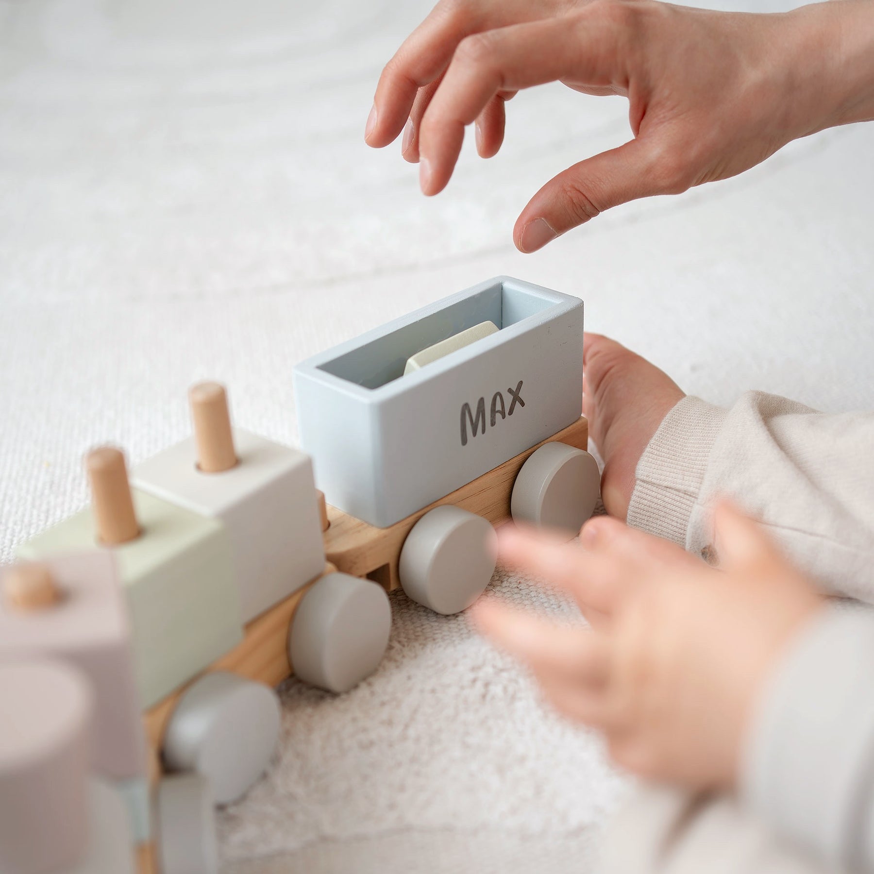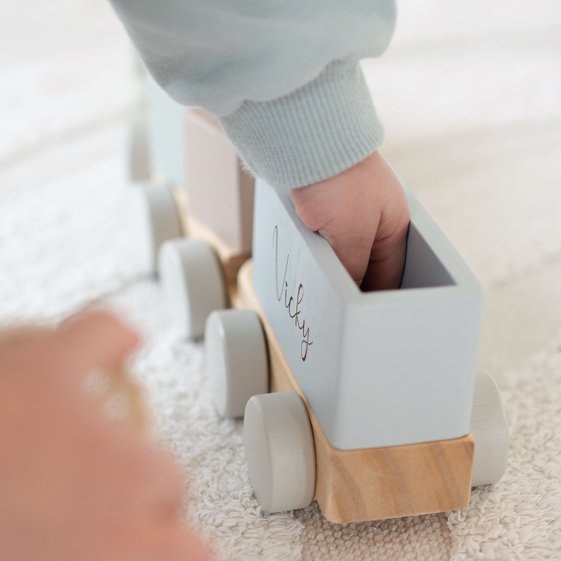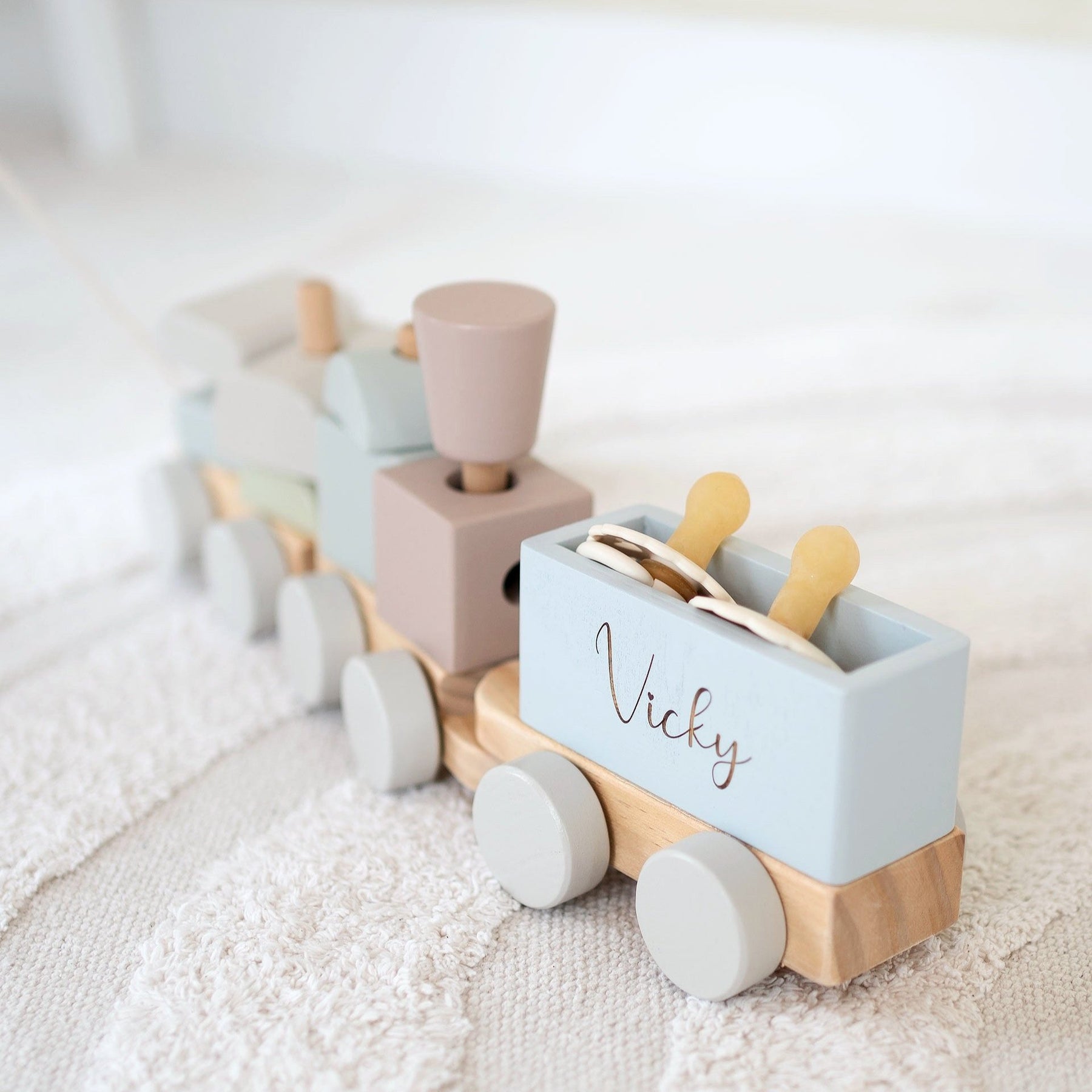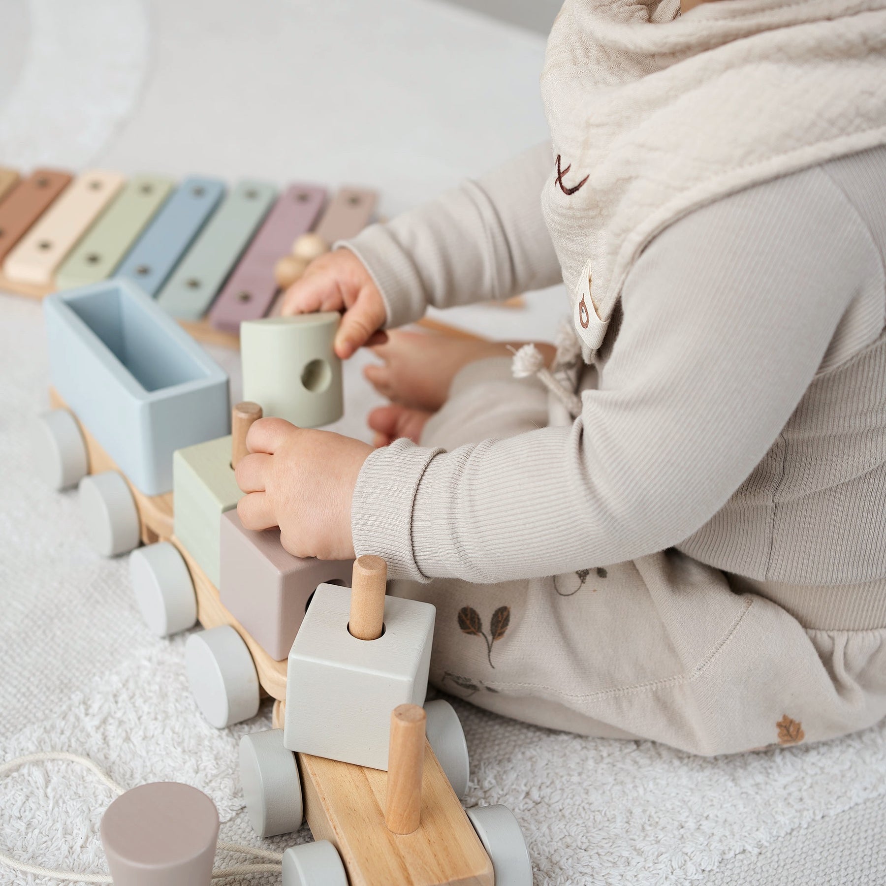 All aboard for fun and imagination with the our new Wooden Blocks Train Set! Handcrafted from FSC-certified wood and painted in soft pastel colours, this beautiful train is as delightful to play with as it is to display in a nursery or playroom.