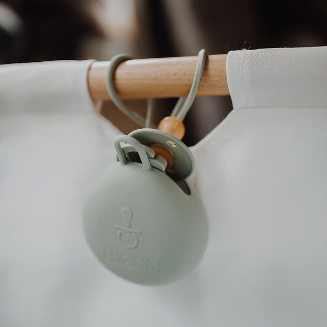 Personalised Pacifier Holder - Equipped with a sturdy strap and room to fit up to 3 dummies. Designed in the UK, the dummy case is made from food-grade silicone in timeless colours and can be easily looped onto a nappy bag or pram.