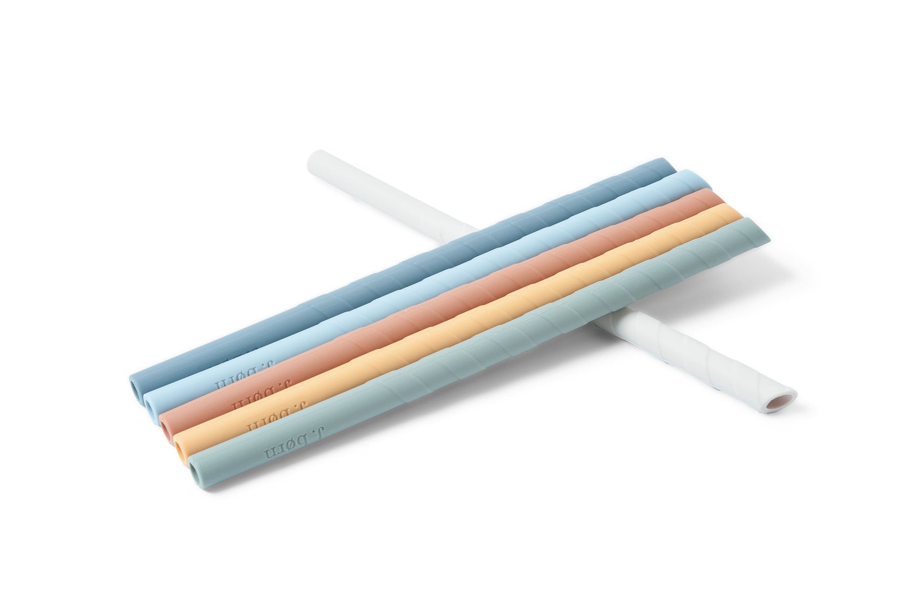JBØRN Silicone Straws (Straight) x6 with Cleaning Brush & Pouch