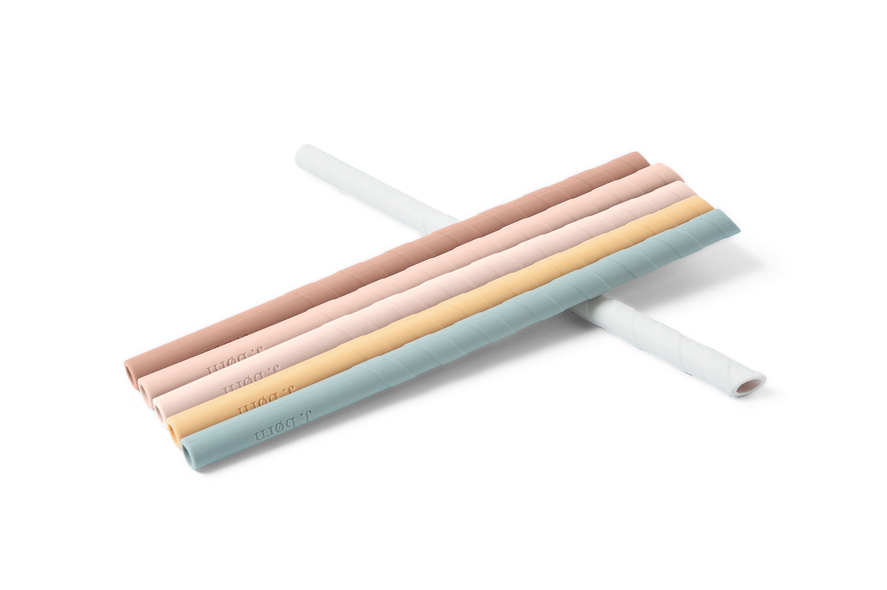 JBØRN Silicone Straws (Straight) x6 with Cleaning Brush & Pouch Blush Mix - Personalisable Baby Products Sold and Personalised by JustBørn